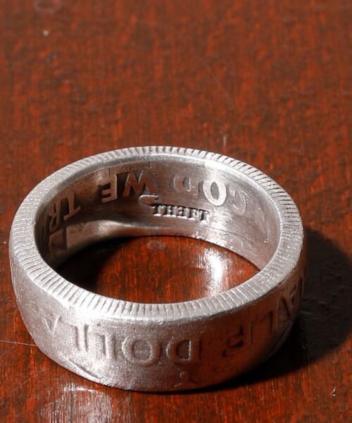 THEFT大人気のコインシリーズのリングになります。コインをくり抜きリング状にデザインされた存在感あるデザインリングになります。サイズ展開もあり男女ともにオススメです。表面はいぶし加工をし雰囲気ある仕上がりです。