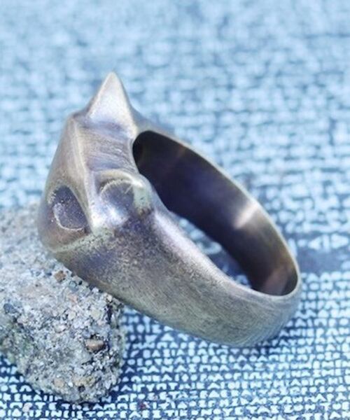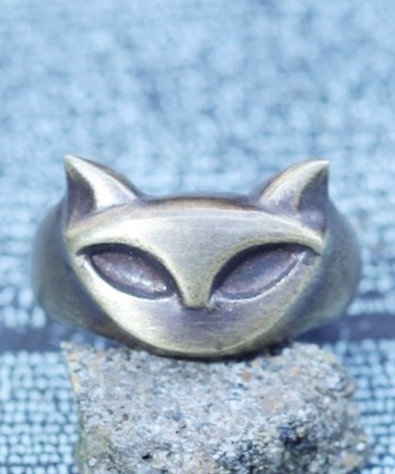 古代猫をモチーフにしたデザインリングになります。古代エジプト文明の中で、猫と言う動物は特異な地位を占めていました。それは現代で言う「愛玩動物」(あいがん→慈しみ可愛がること)という概念を超え、ほとんど宗教の信仰対象と言ってもよいような強大なものでした。可愛いようでカッコイイようでそんなリングです。レディースからメンズサイズまで展開していますので男女共にオススメです。表面はアンティーク仕上げで落ち着いた雰囲気です。