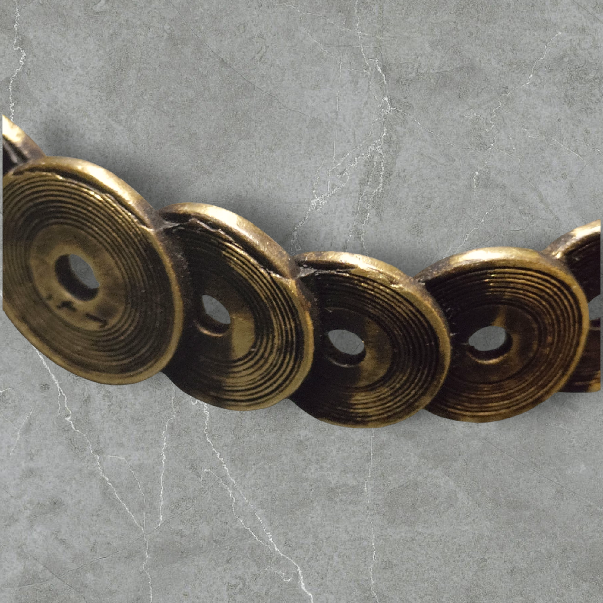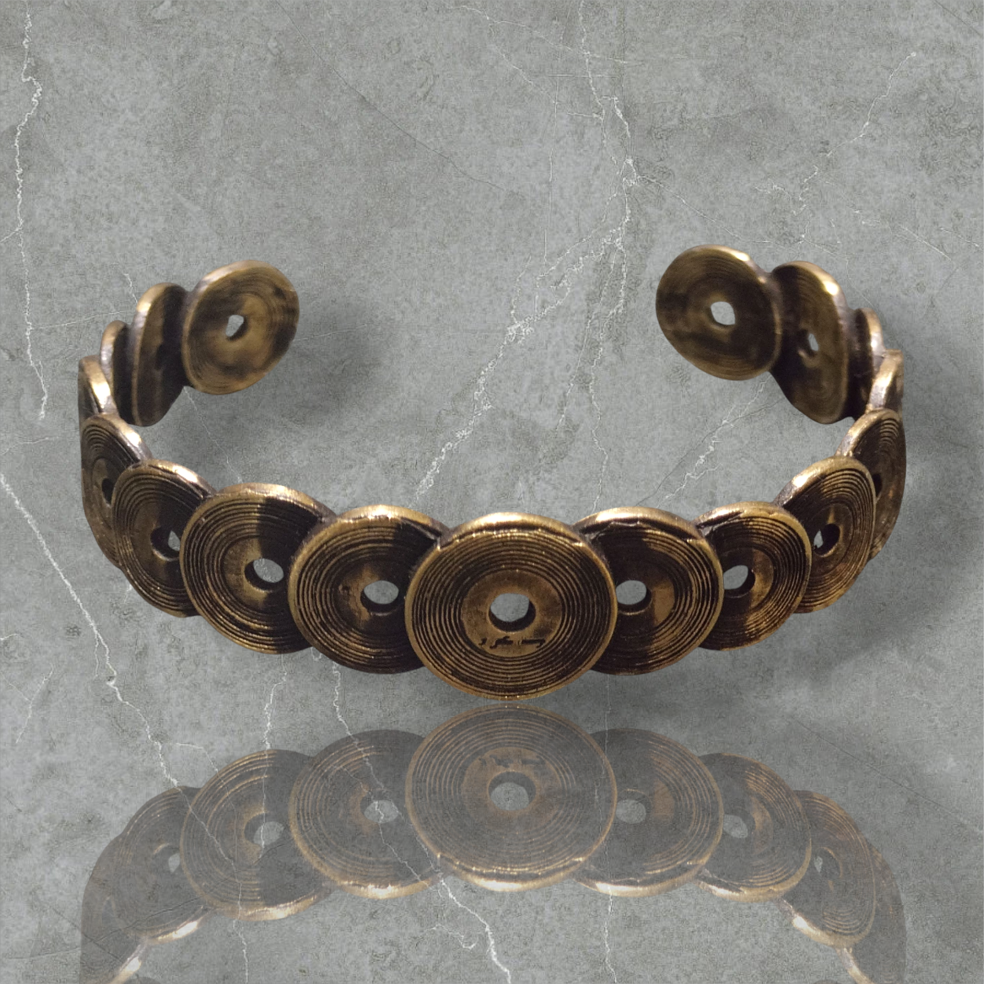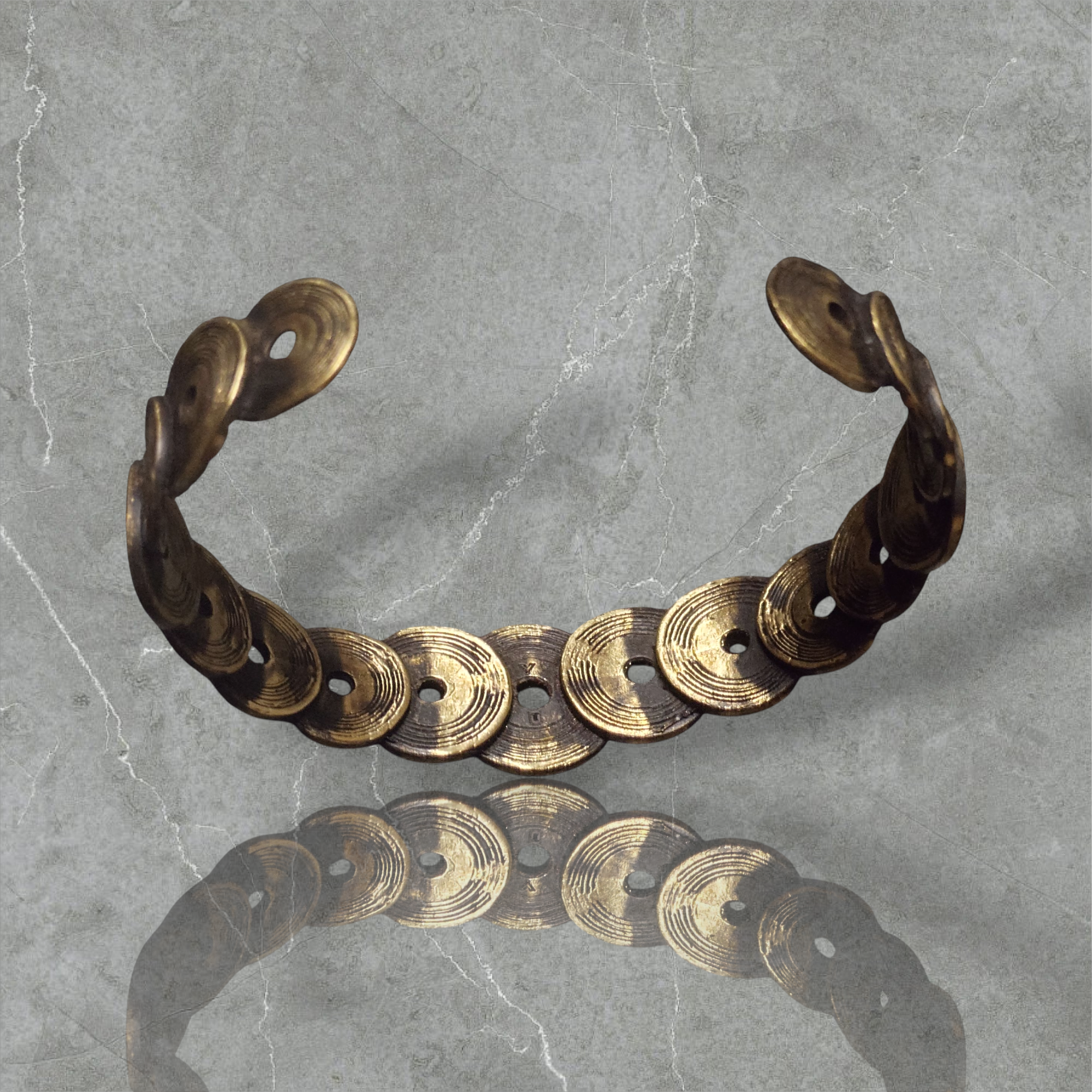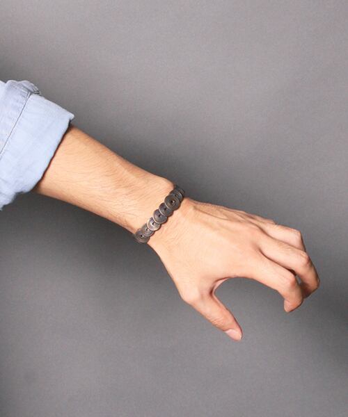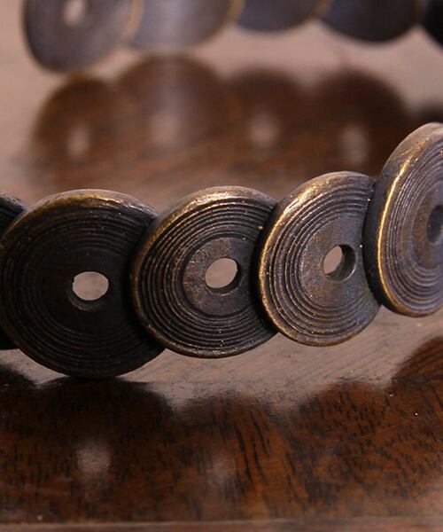 レコードネックレスと同じデザインのレコードが幾つか連なったバングルです。