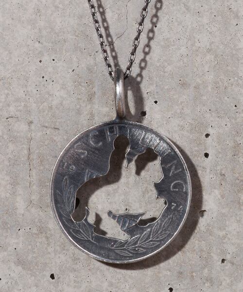 コインをくり抜き内枠と外枠で合わせた重ね付けのネックレスになります。