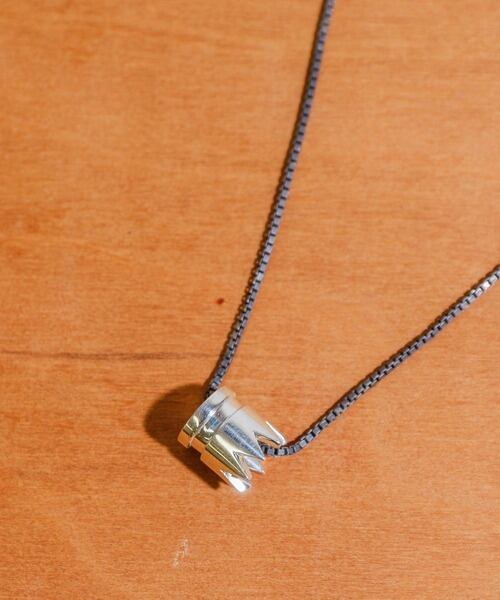 シンプルでボリューム感ある王冠モチーフのネックレスになります。トップは鏡面仕上げで上品な仕上がりに。チェーンはいぶし加工し落ち着いた雰囲気に仕上がっています。チェーンの形状はベネチアンチェーンになります。男女ともにおすすめでギフトでも是非どうぞ。
