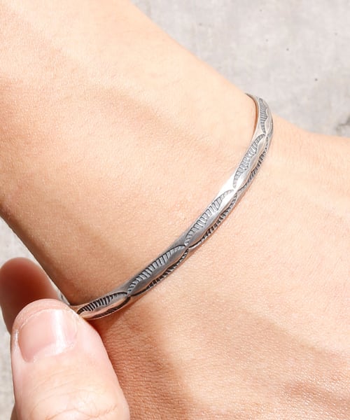 バングル表面にはネイティブ調のスタンプを刻印し全体的にバランスよくデザインされてます。