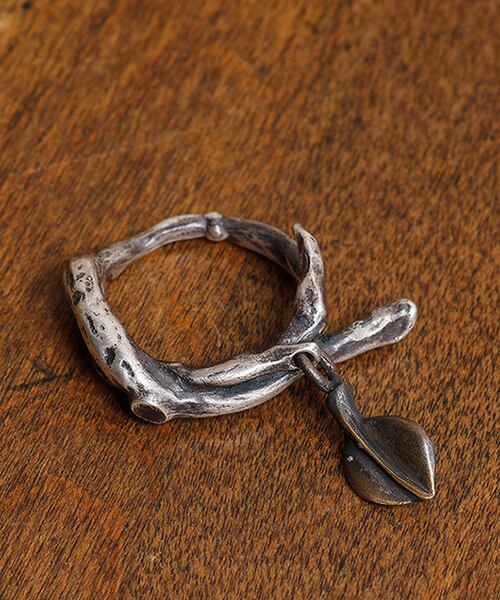 ワンポイントに真鍮製の葉っぱを使い哀愁漂うリングになります。