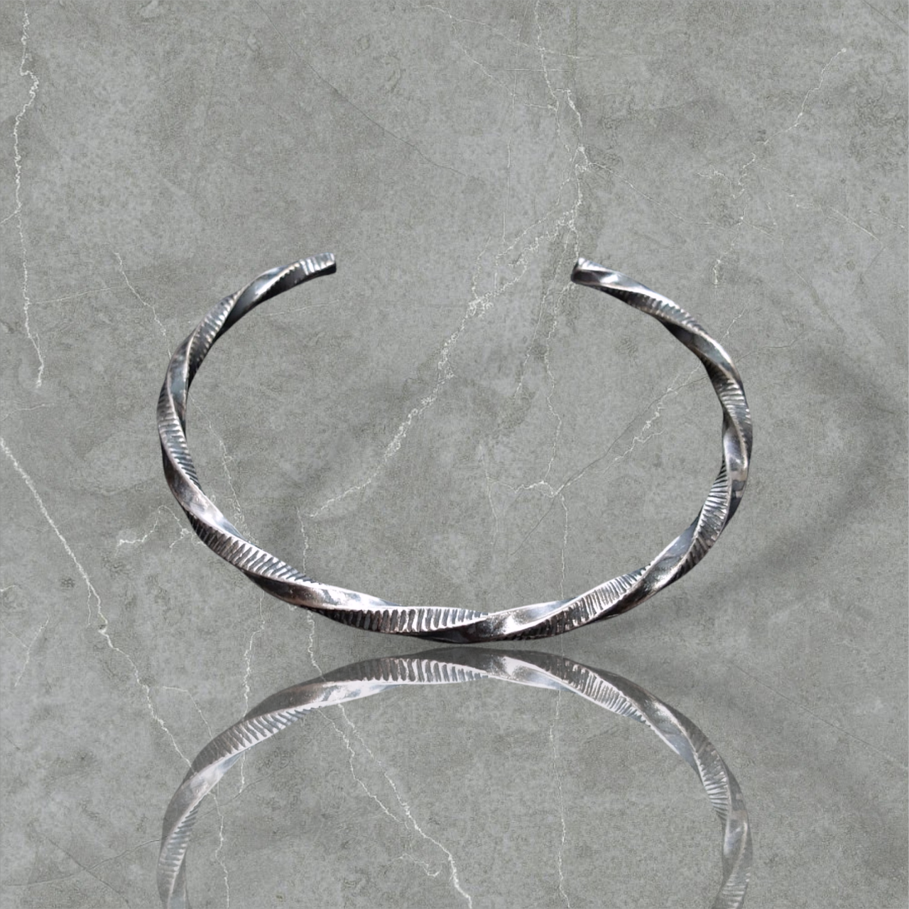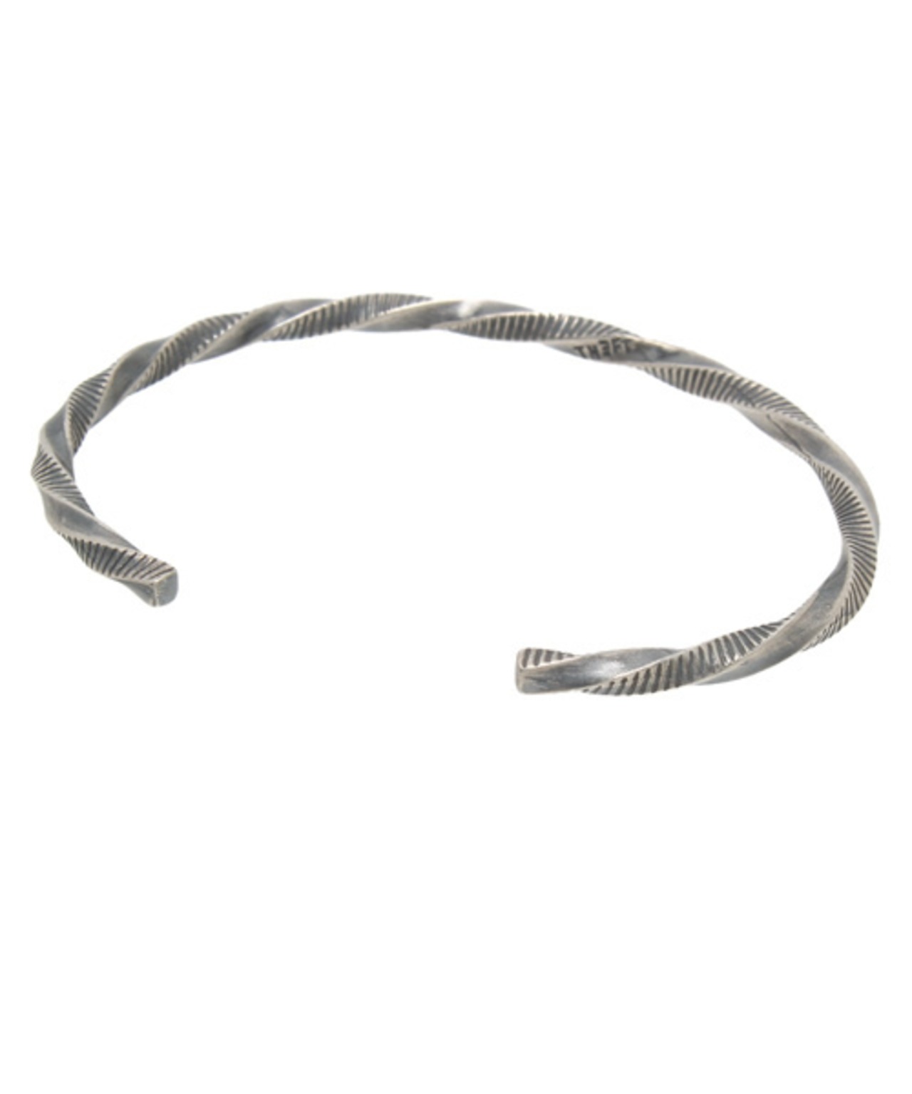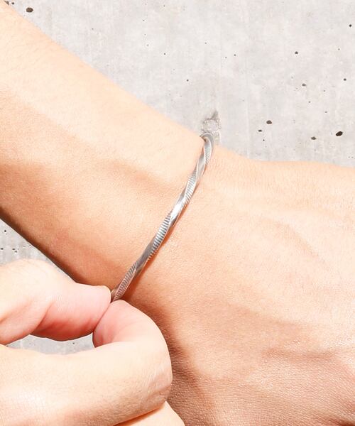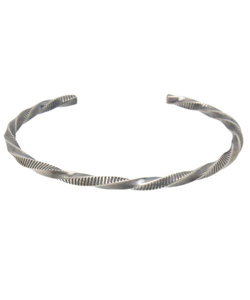 細身のバングルにシンプルにラインにツイストを合わせた、雰囲気あるいぶし加工に。