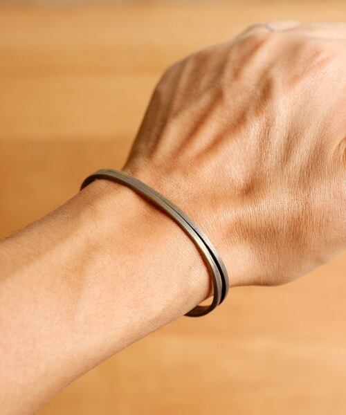 身に着けると2連バングルのように見え、シンプルなデザインバングルです。
