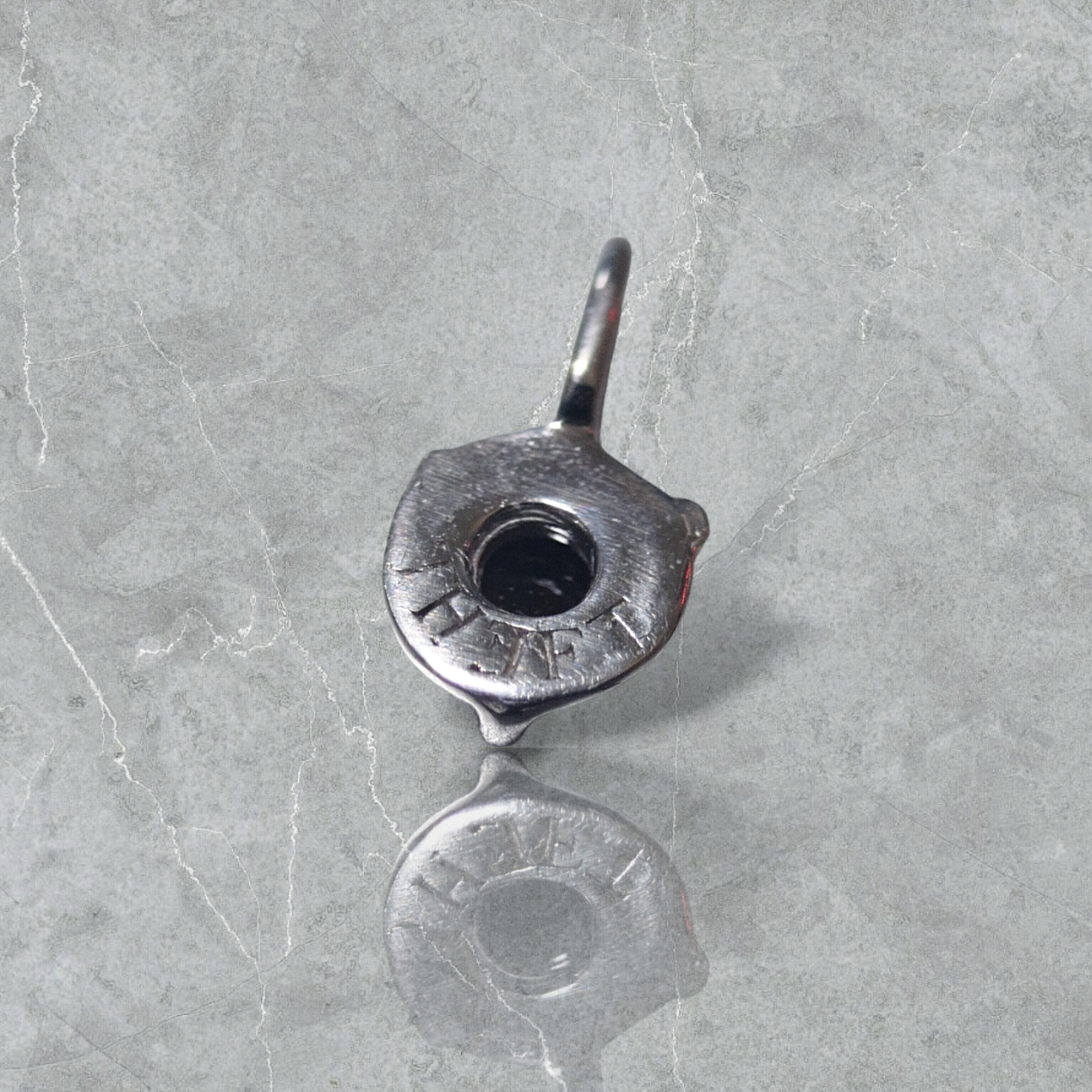 小ぶりでシンプルなトップに素材を18金ホワイトゴールドを贅沢に使い、中央にブラックダイヤモンドを入れております。