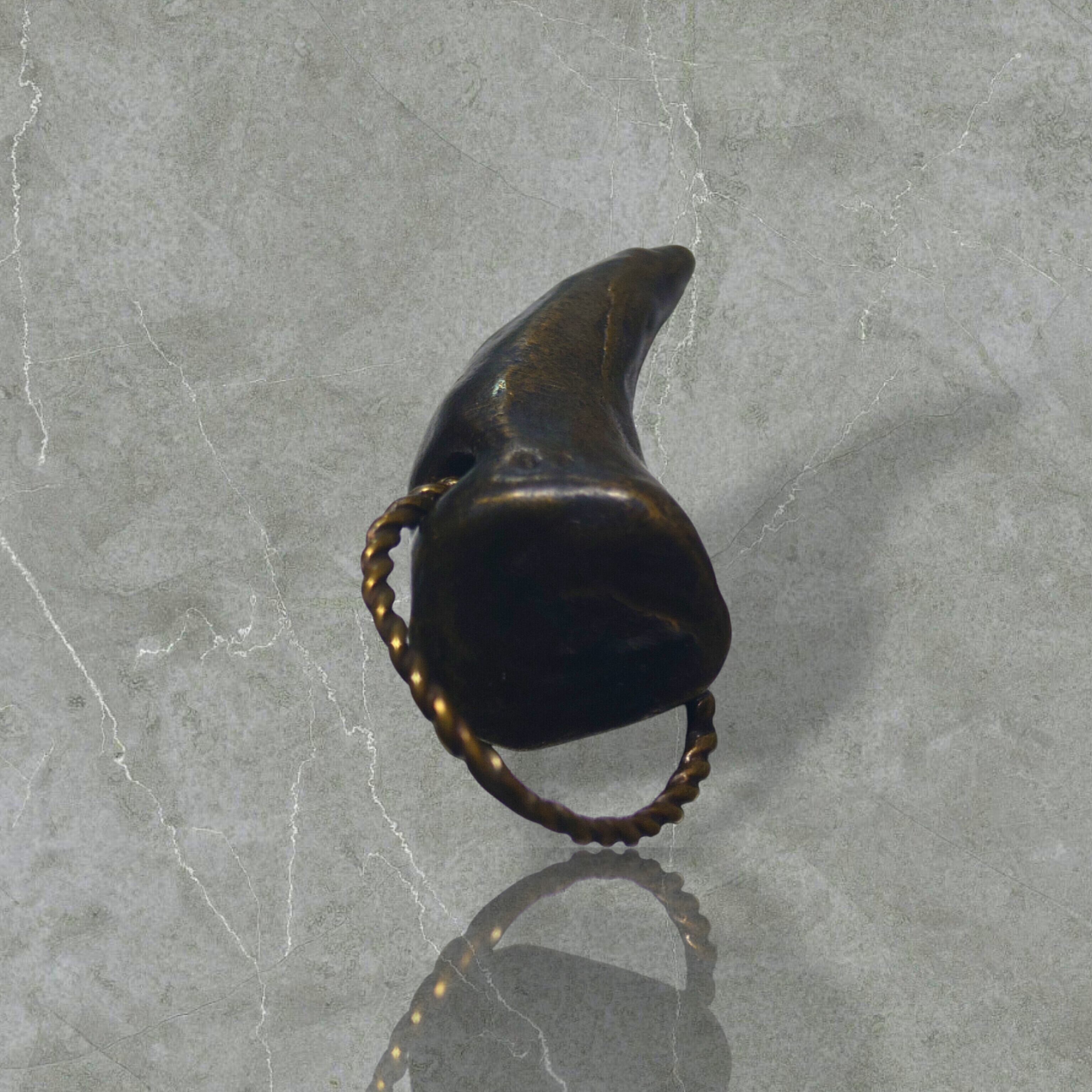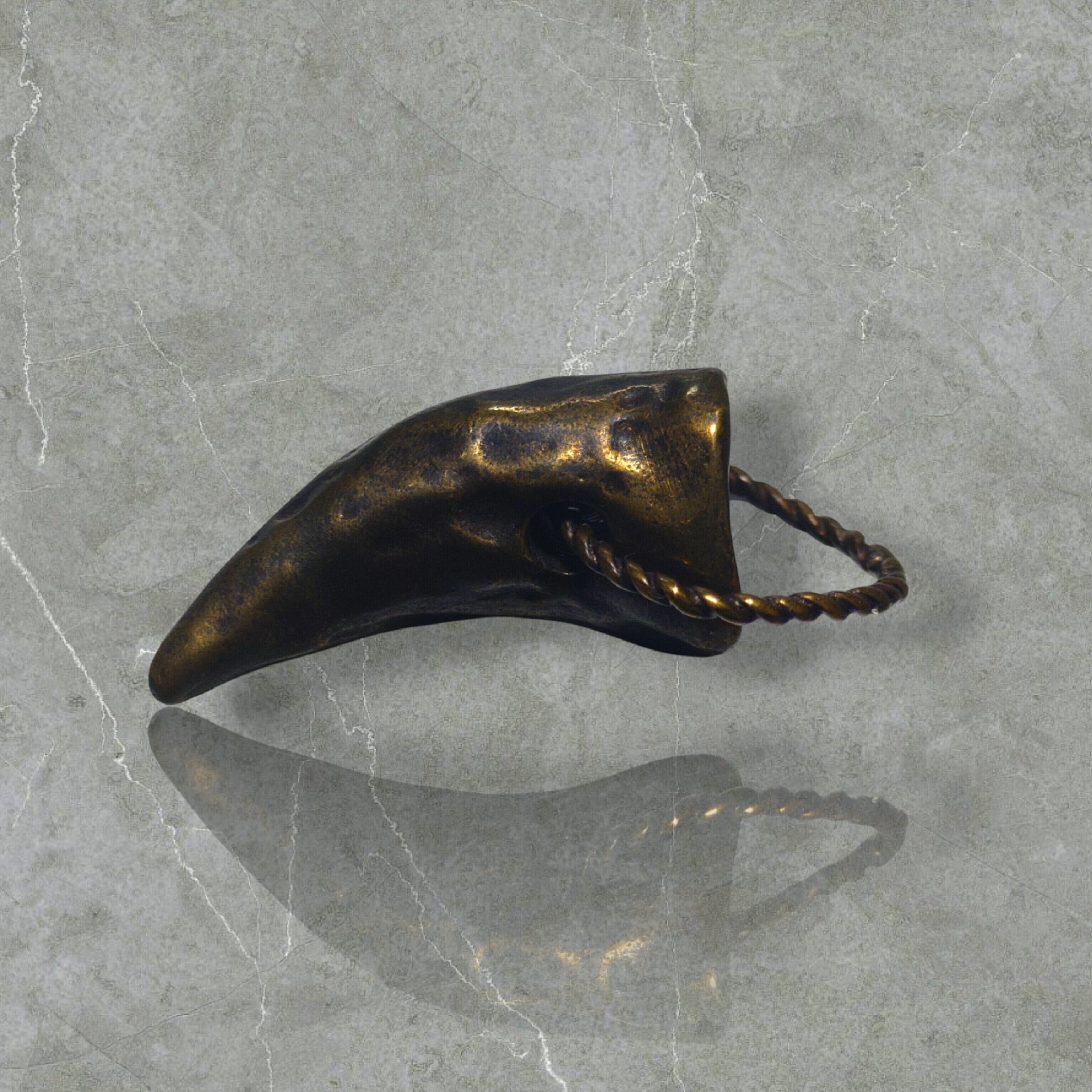 素材は真鍮を使い、重量感あるデザインになり、表面はいぶし加工を施しアンティーク仕上げにしております。