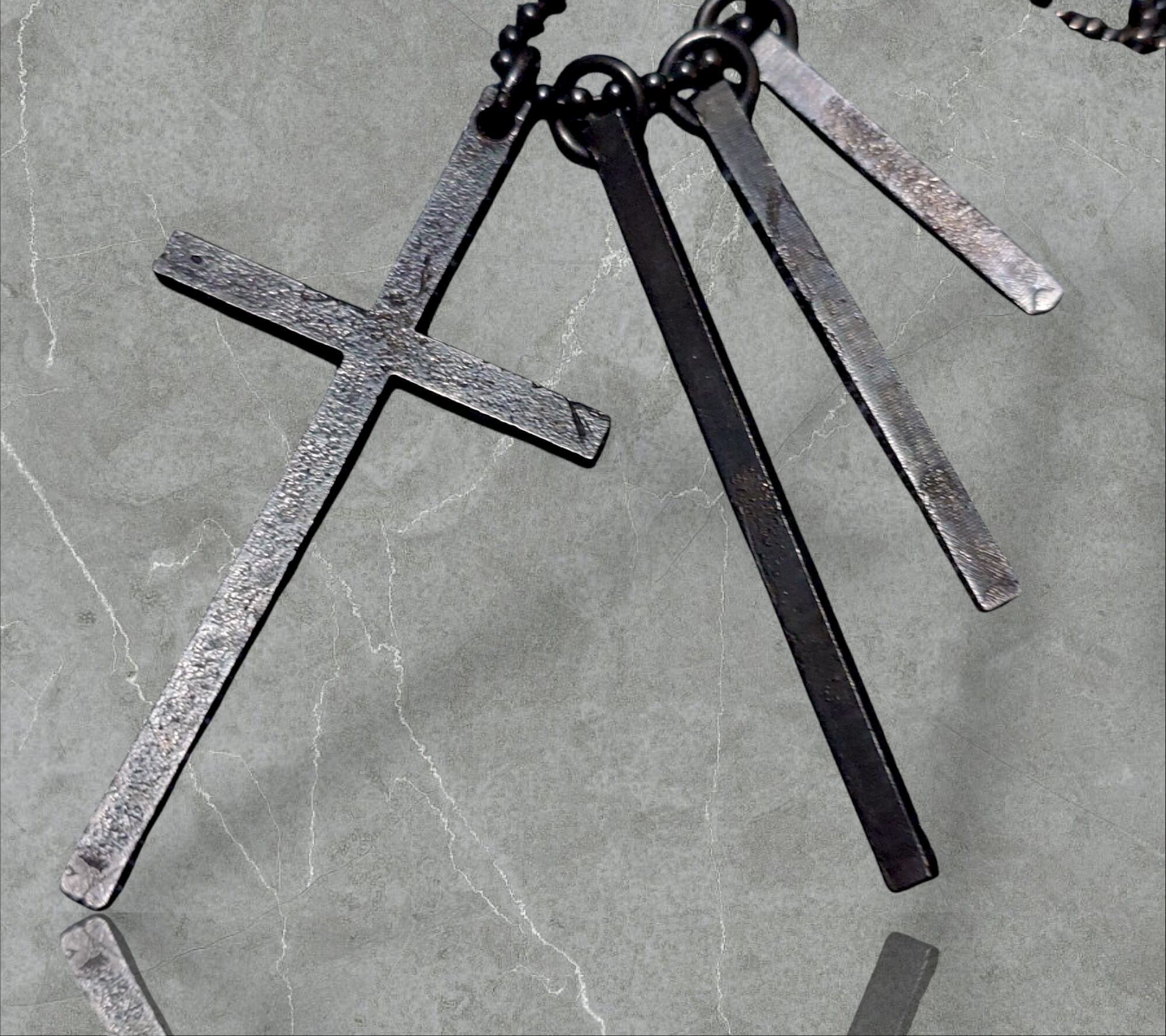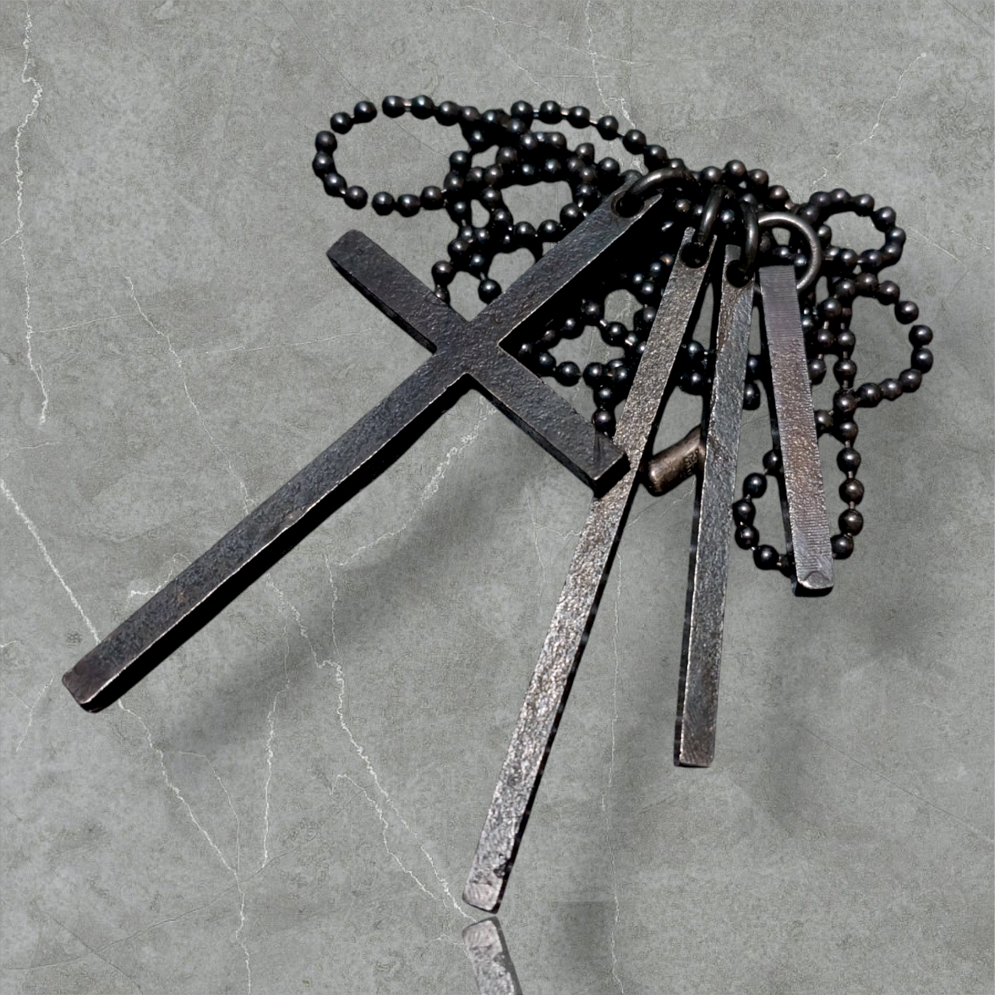 THEFT SILVER MAGMA CROSS & STICK NECKLACE / セフト シルバー マグマ クロス スティック ネックレス